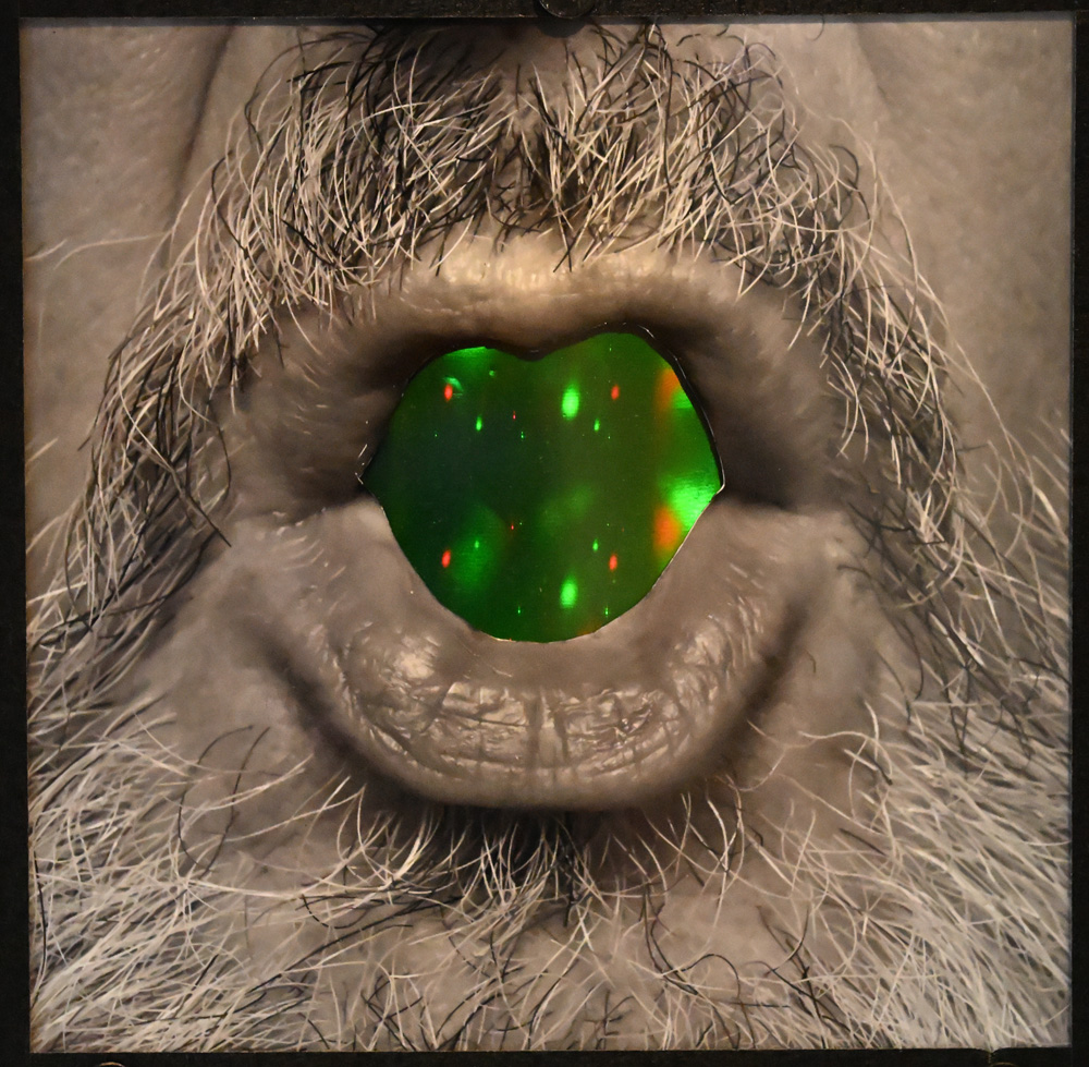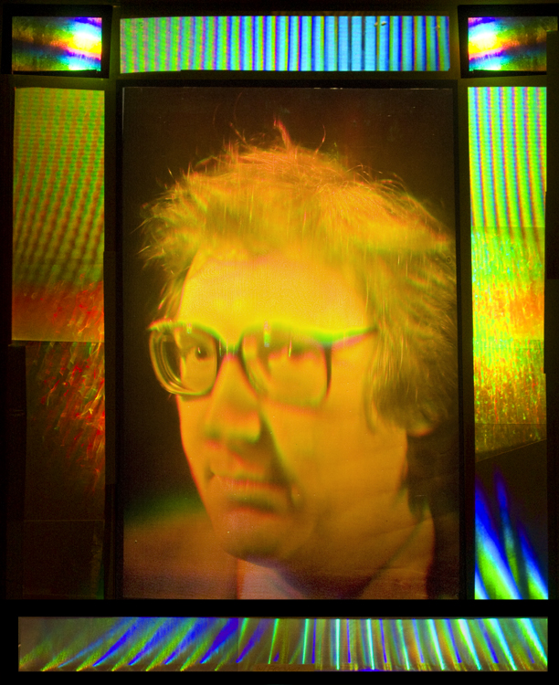 The title above was the name of the show this piece was entered into, and it seems to fit as a monker for it, as what better transmits the personality of the inventor of the Holographic Optical Embellishment than a pulsed laser portrait surrounded by some of his handiwork? (Addendum; sorry to say, this piece did not get into the show! Because it would have been the best in the show!)