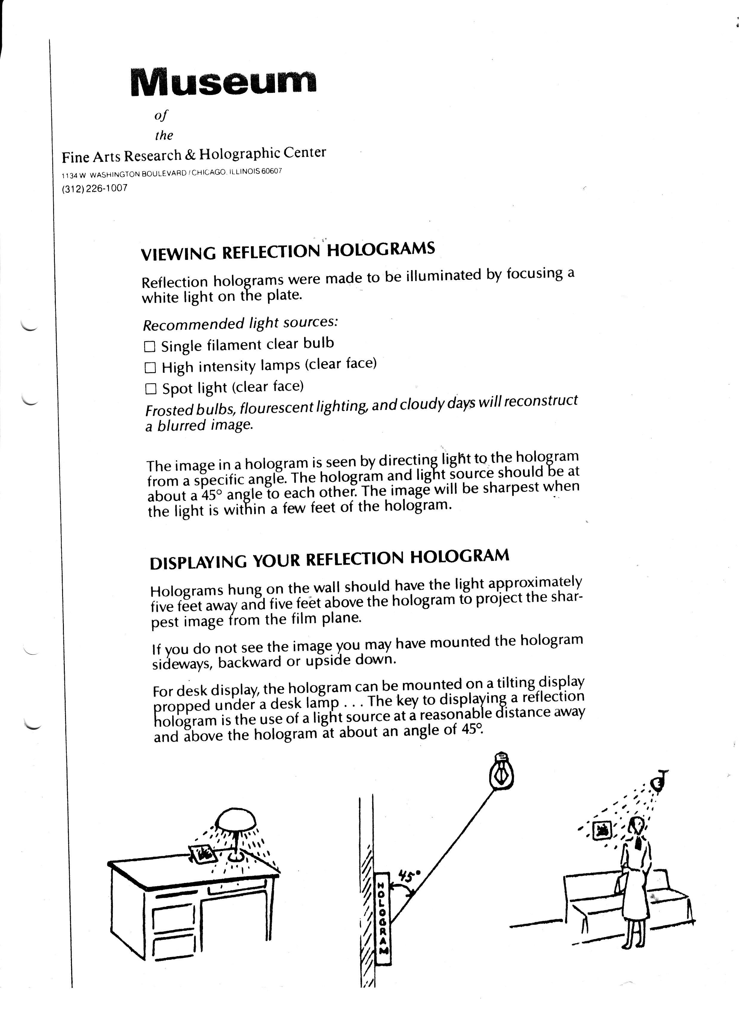 "Hello Holography" An Introduction to Holography by John Hoffmann-Artist & Research Holographer kicks off the Fall 1979 Lecture Series on October 3, followed by "Lasers-Light of the Future" by Rudy Haidle-Analytic Chemist and Laser Researcher on October 10, then "Through the Optic Glass & Into Wonderland" with David Wender-Pioneer Holographer, Optical Expert, ending on October 23 with "Welcome to the Future" by Tung H. Jeong-Professor of Physics, Pioneer Holographer.